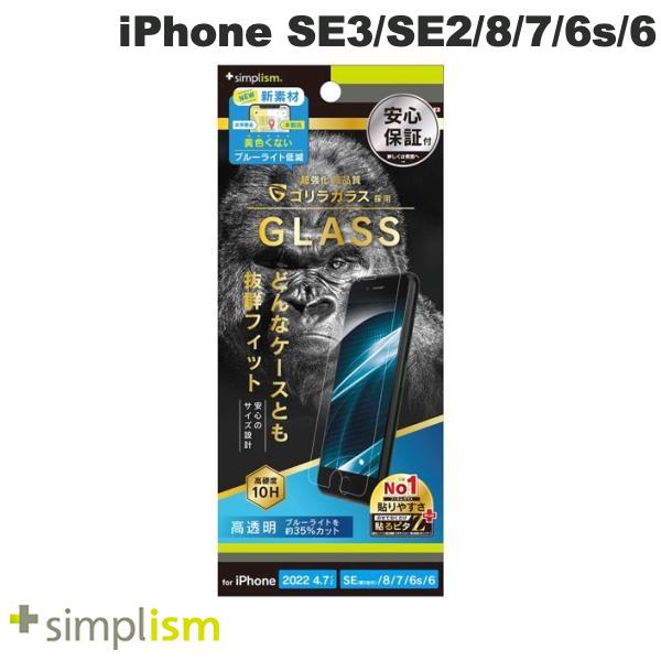Simplism iPhone SE 第3世代 / SE 第2世代 / 8 / 7 / 6s / 6 ゴリラガラス 黄色くならないブルーライト低減 画面保護強化ガラス 光沢 0.7mm # TR-IP224-GLS-GOB3CC シンプリズム トリニティ