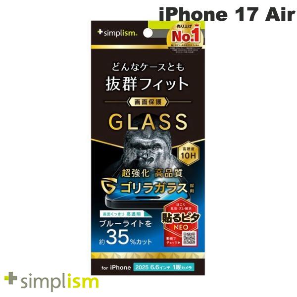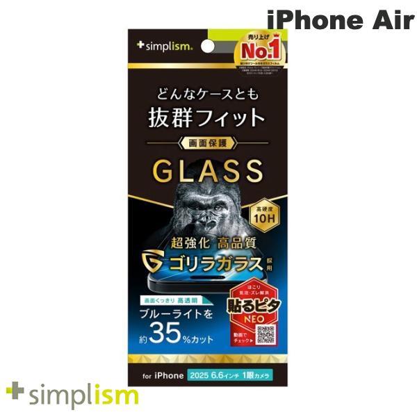 Simplism iPhone Air ケースとの相性抜群 ゴリラガラス 黄色くないブルーライト低減 画面保護強化ガラス 光沢 # TR-IP25L1-GLS-GOB3CC シンプリズム (スマホ用液晶保護ガラスフィルム) トリニティ 2025