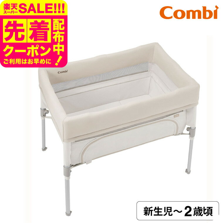コンビ トモネル ベビーベッド コンパクト ミルキー / PSCマーク SGマーク 安全 メッシュ 安心 洗える コンパクト 運べる 省スペース ベージュ 新生児 らくらく 寝返り たためる フロアベッド ハイベッド サークルベッド ベビー用品