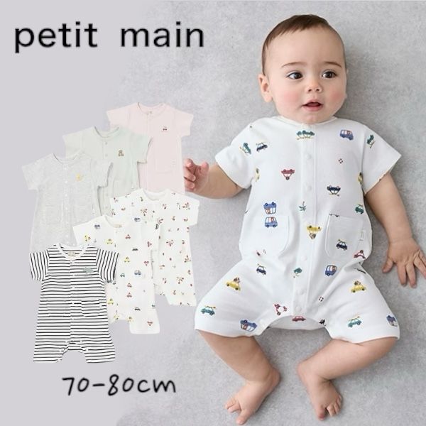 Petit main 【GOODPRICE】半袖カバーオール No.9551513 ( プティマイン 子供服 男の子 女の子 ベビー 新生児 赤ちゃん 半袖 ロンパース カバーオール 肌着 前開き 総柄 出産祝い プレゼント ギフト 可愛い 人気 プチプラ 春 夏 秋 )