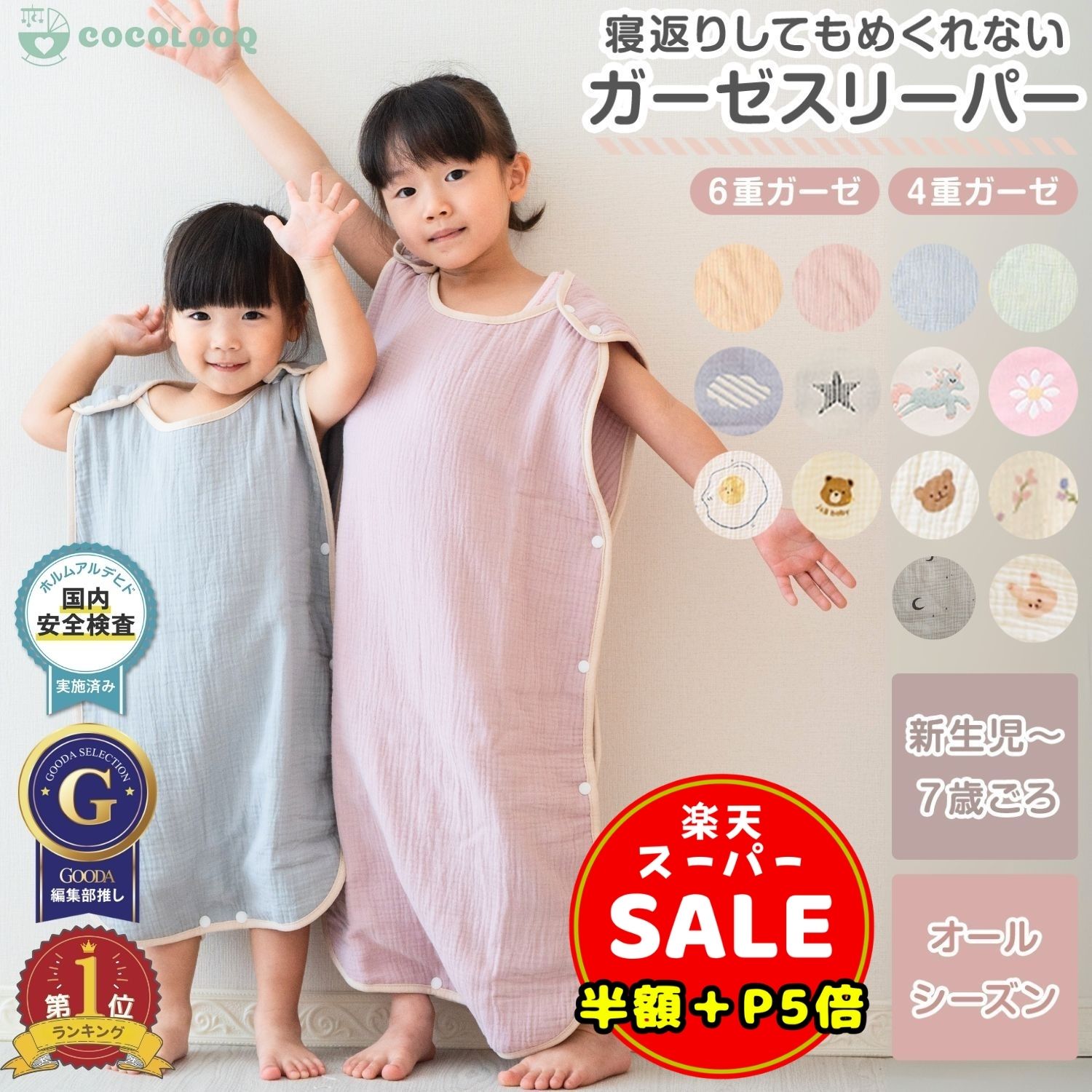\半額/【300円OFF&P5倍】スリーパー ガーゼ 6重ガーゼ キッズ 綿 100 赤ちゃん ベビー 新生児 ベビースリーパー パジャマ 布団 イブル おくるみ スリーパー おしゃれ 綿毛布 タオル地 寝冷え対策 ふわふわ お昼寝 ロング コットン 幼児 子供 春 秋 冬