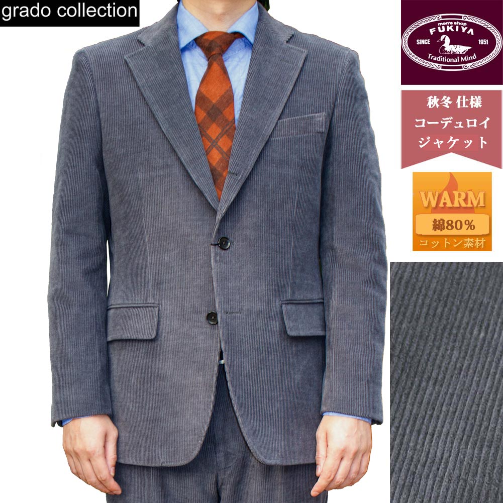 コーデュロイ ジャケット メンズ 秋冬 3つボタン グラードコレクション(grado collection) 段返り三つボタン パープルグレ− 0618 A3 A4 A5 A6 A7 AB4 AB5 AB6 AB7 BB5 BB6 BB7 BB8