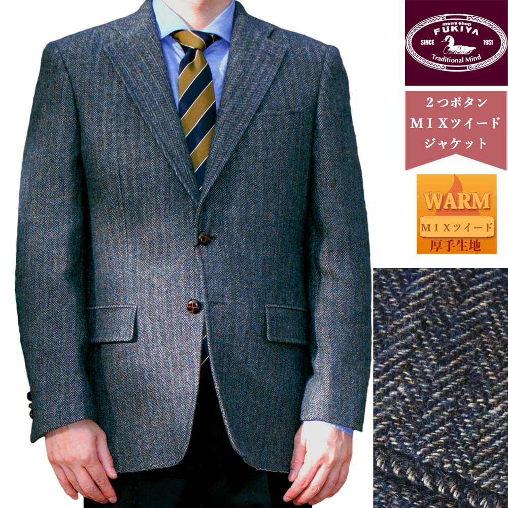 ツイード ジャケット メンズ 秋冬 2つボタン グラードコレクション (grado collection) ヘリンボーン ブルー系 MIX 5085 A5 A6 A7 A8 AB4 AB5 AB6 BB4 BB6