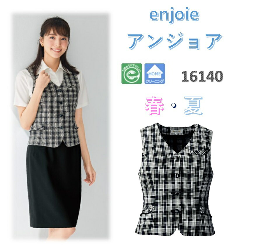 enjoie アンジョア Graphical Check グラフィカルチェック ベスト ブラック 事務服 レディース 制服 エコ素材 16140 【正規代理店】
