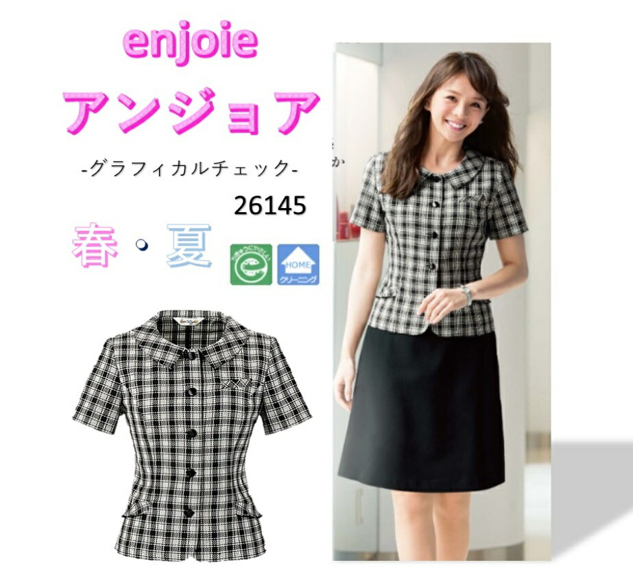 enjoie アンジョア Graphical Check グラフィカルチェック オーバーブラウス ブラック 事務服 レディース 制服 エコ素材 26145 【正規代理店】