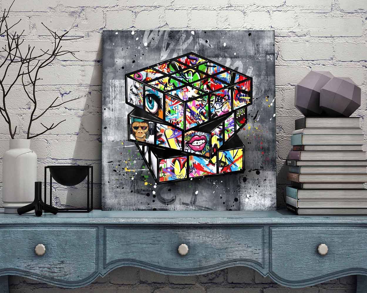 【BLACK FRIDAY限定クーポン】 ARTJOY Graphical magic-cube white M 34cm 14inch 絵画 インテリア アートパネル おしゃれ 絵 壁掛け ストリート アート 玄関 リビング 人気 ブランド 北欧 モダン アートボード グレー 赤 ピンク サル 猿 キューブ limitedtimesp