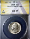 1965年製 ERROR ANACS MS65 グリース+弦を通した打刻 ワシントンクォーター GEM BUコイン