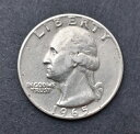 1965年 アメリカ、リバティ、G.ワシントン 25セント硬貨。円形、ミントレターなし。希少品