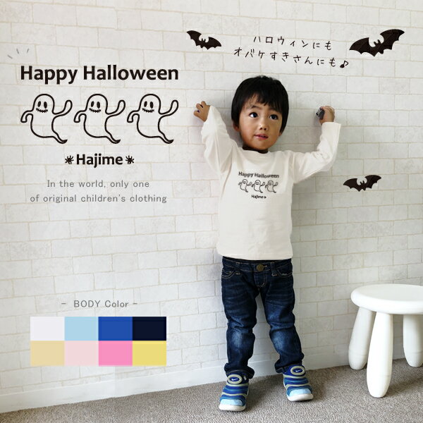 メール便送料無料 ハロウィン 仮装 名前入り 長袖 Tシャツ [ 3オバケ ] 男の子 女の子 ベビー キッズ ジュニア 大人 親子 リンクコーデ オーダー オリジナル ギフト 全10色/タグ外側タイプ全4色 80-150cm XS-3XL lt