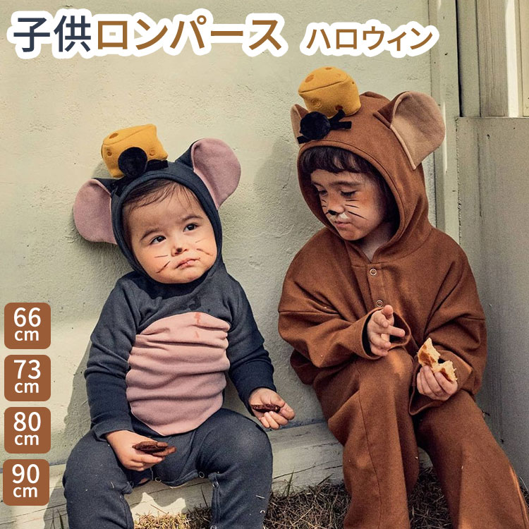 ハロウィン ベビー ロンパース 長袖 ハロウィン衣装 ネズミ着ぐるみ 子供用 ねずみ コスプレ衣装 Halloween 仮装 カンガルー カバーオール ベビー服 コスチューム コスプレ 写真撮影 記念写真 ギフト プレゼント 66cm 73 80 90cm 女の子 男の子 ルームウエア