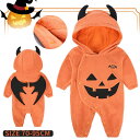 ハロウィン 帽子付き 長袖 かぼちゃ オールインワン ベビーロンパース 子供服 ベビー服 Halloween 66cm/73cm/80cm/90cm【予約商品】【納期7~14日程度】