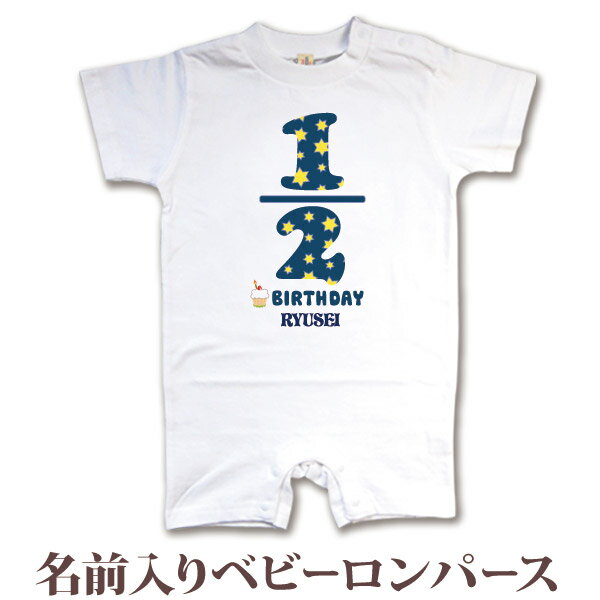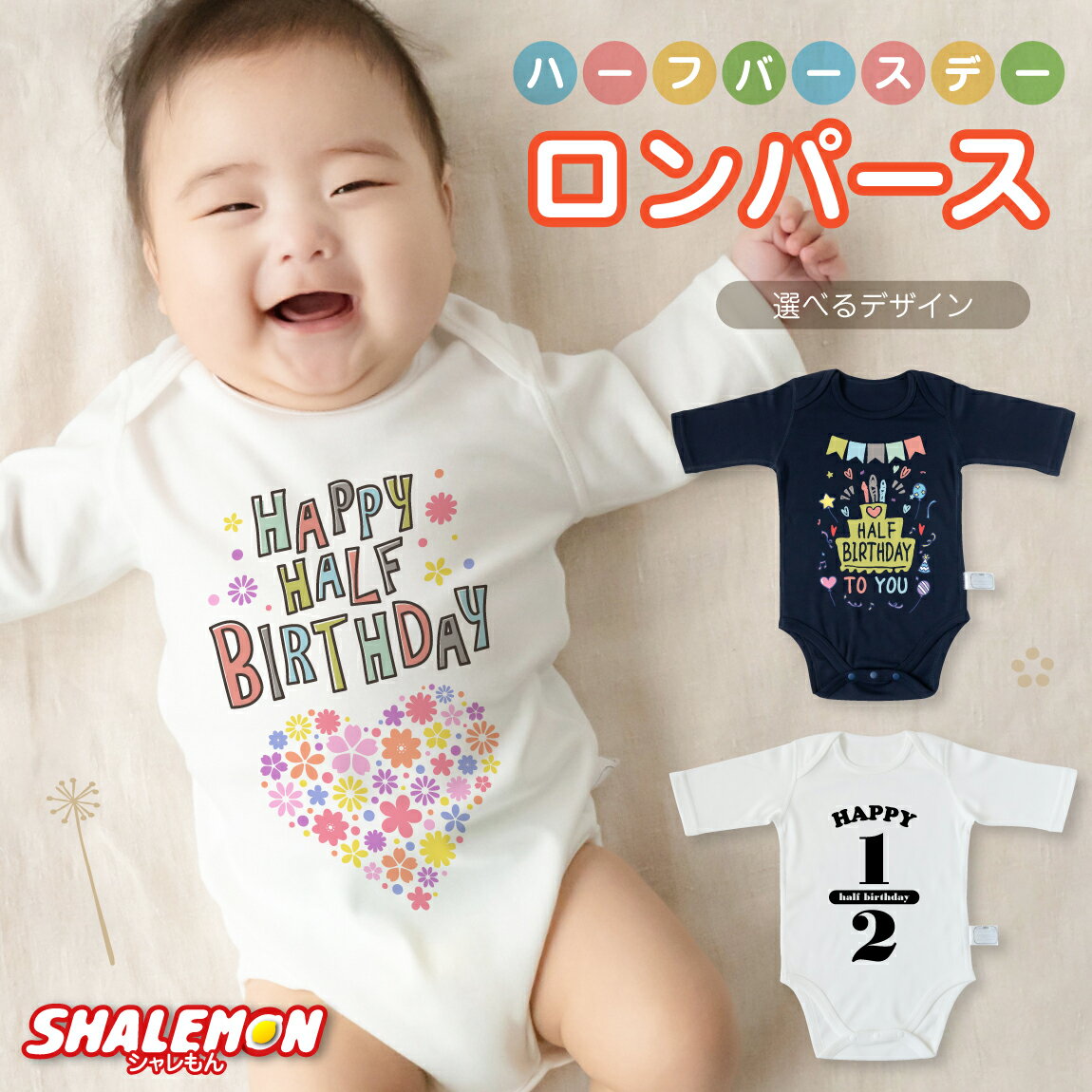ロンパース 男の子 女の子 ( おもしろ 七分袖 半袖 ベビー ロンパース ) ( ハーフバースデー ) 誕生日 記念日 記念撮影 バースデー フォト お祝い 赤ちゃん オリジナル ベビー服 ボディスーツ カバーオール 部屋着 インナー ギフト 内祝い おしゃれ かわいい