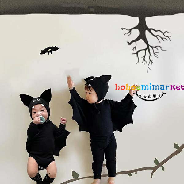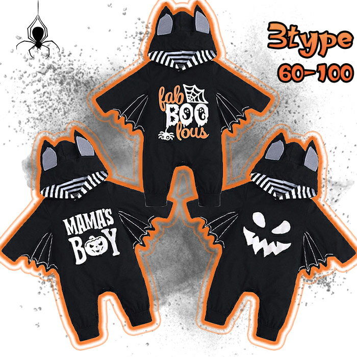 ベビー ハロウィン ハロウィーン Halloween 仮装 コウモリ かぼちゃ 上下セット ロンパース カバーオール ベビー服 コスチューム コスプレ 写真撮影 記念写真 男の子 女の子 ギフト プレゼント70 80 90 95