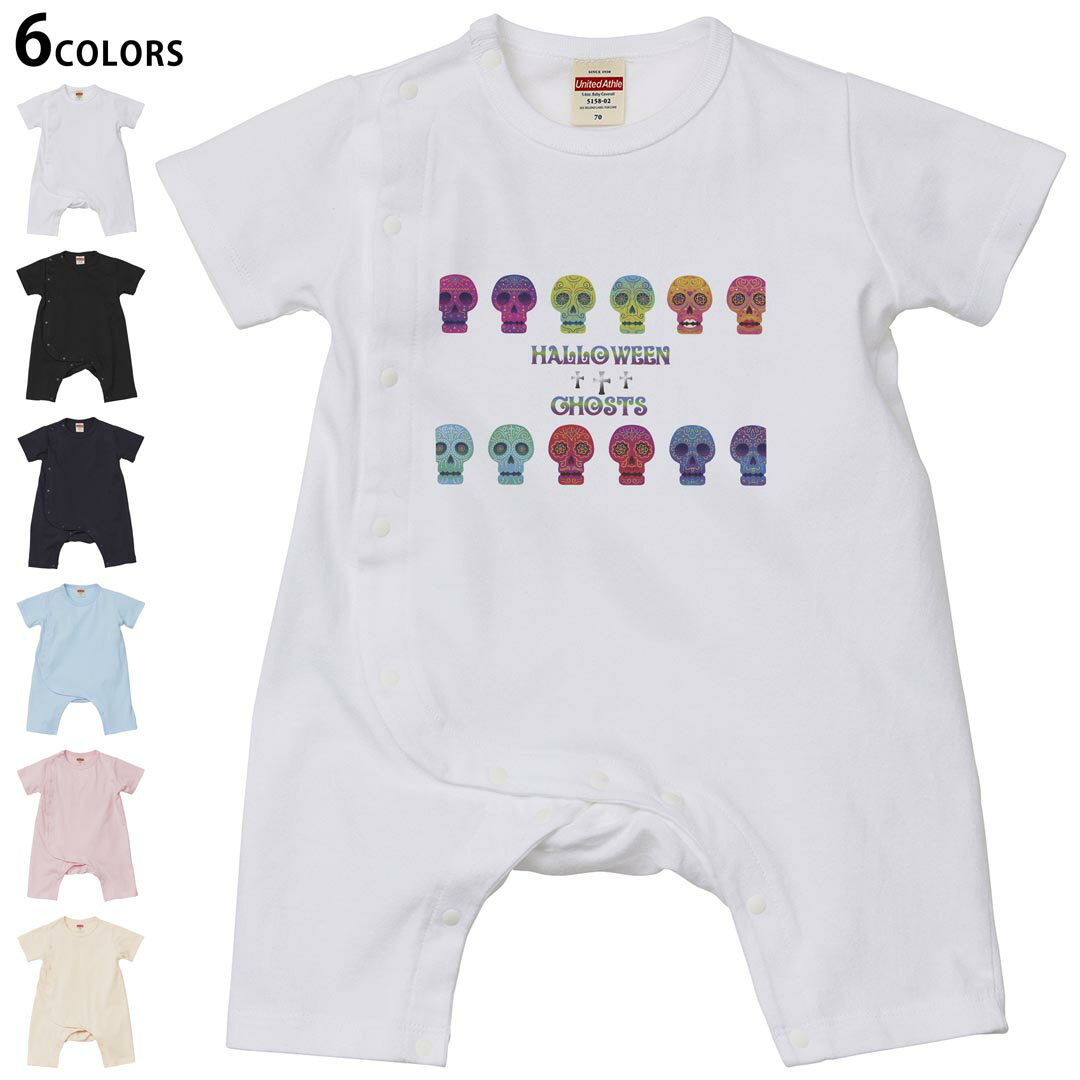 選べる6カラー ロンパース カバーオール 赤ちゃん 半袖 デザイン 70cm 80cm rompers ベビー 新生児 キッズ 70サイズ 80サイズ ギフト マタニティ 妊婦 出産祝い プレママ ティーシャツ T shirt 026137 骸骨 カラフル Halloween