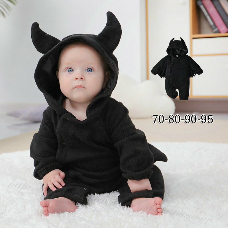 ハロウィン衣装 コスチューム 悪魔衣装 キッズ 児童 長袖 ベビー 赤ちゃん 男の子 女の子 子供用 カバーオール パンプキン キッズ 子供 コスプレ オールインワン お出かけ 暖かい 保温 宴会 撮影 ロンパース 蝙蝠 こうもり ハロウィン仮装 ブラック60/70/80/90/100cm