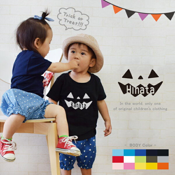 メール便送料無料 ハロウィン 仮装 半袖 Tシャツ [ PumpkinFace ] かぼちゃ パンプキン 名前入 こども服 御祝い 人気 思い出 シンプル オシャレ オリジナル オーダー 選べる ベビー キッズ ジュニア パパ ママ ドライ 速乾 st std