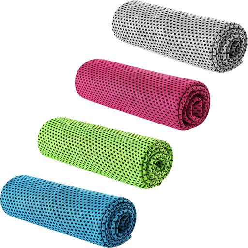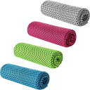 【商品仕様】冷感タオル4色セット、サイズ:30x80cm。素材:ポリエステル。 【吸汗速乾】汗を素早く吸収し、すぐに乾く、通気性が良く、蒸れにくいので、暑いときによく歩く方にお勧めです。 【柔らかくて快適】肌触りが良く、柔らかい素材で作られているので、長時間使用しても快適です。 【冷却効果】水に濡らして絞るだけで、ひんやりとした冷却効果が得られ、暑い日でも清涼感を持続します。 【多用途で便利】頭に巻いたり、首に巻いたり、手首に巻いたりと、汗を拭くスポーツタオルとしても使いながら、さまざまな使い方ができます。
