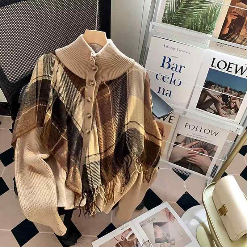 カーディガン レディース ニットカーディガン レトロ 菱形柄 フリンジ 秋冬 韓国風 ゆったり ミドル丈 高めネック 長袖 ミドルゲージ 日常着