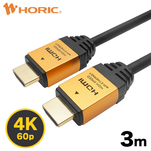 Ver2.0 HDMIケーブル 3m 4K/60p HDR ARC HEC 対応 プレミアムハイスピードHDMI準拠品 18Gbps伝送 3重シールドケーブル 金メッキ端子 テレビ TV パソコン PC ゲーム リモートワーク 映像ケーブル 長い 長距離 配線 延長 ホーリック HORIC