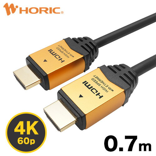 Ver2.0 HDMIケーブル 0.7m 4K/60p HDR ARC HEC 対応 プレミアムハイスピードHDMI準拠品 18Gbps伝送 3重シールドケーブル 金メッキ端子 テレビ、ゲーム機の接続等 ホーリック HORIC HDM07-281GD 『シンプルで高級感のあるアルミヘッド仕様』