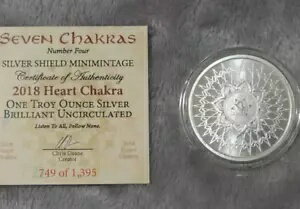 2018 ハート チャクラ シルバー シールド 1オンス .999 シルバー コイン カプセル&COA付き #749