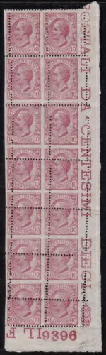 1906年 イタリア王国 No. 82 ブロック 14 MNH/** 大きくずれた鋸歯状