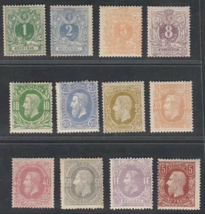 ベルギー 1869年 - 造幣局切手、一部は重ヒンジ付き(MH)。ベルギー カタログ番号: 26-37。(EB) MV-4026