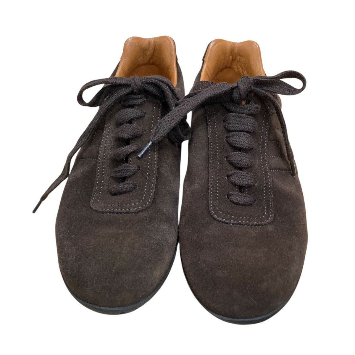 【中古】HERMESHロゴスウェードローカットスニーカー ブラウン サイズ:36【価格見直し】