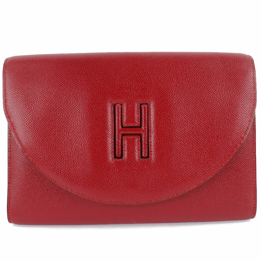 【スーパーセール10%OFF対象】エルメス HERMES Hロゴ クラッチバッグ ヴィンテージ ヴォーエプソン ルージュヴィフ フランス製 1989年 赤 〇S スナップボタン H logo レディース【中古】