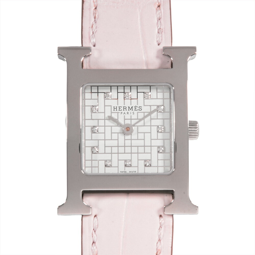 エルメス HERMES HH1.210C Hウォッチ 腕時計 クォーツ ホワイト文字盤 12Pダイヤ SS レディース【中古】