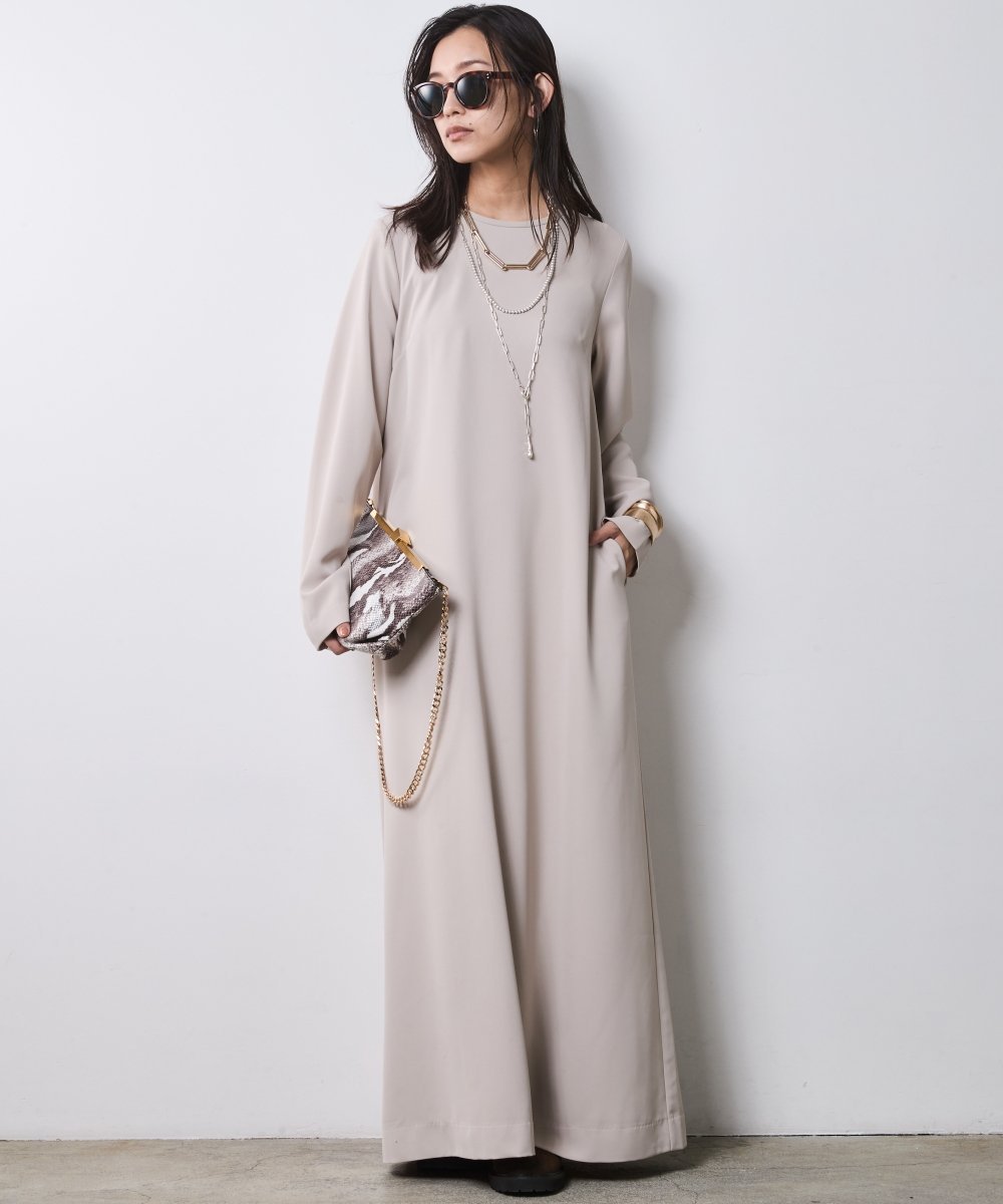 CHIC STYLE クルーネックマキシワンピース<大きいサイズ有>シックスタイル シックスタイル ワンピース・ドレス ワンピース ベージュ【送料無料】