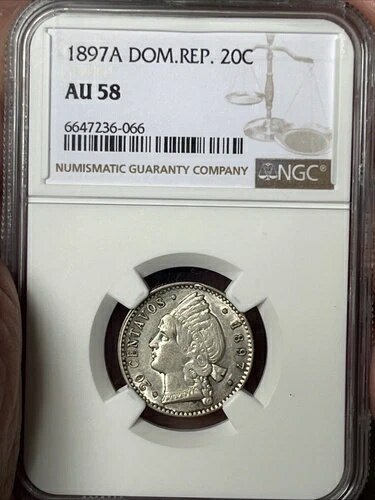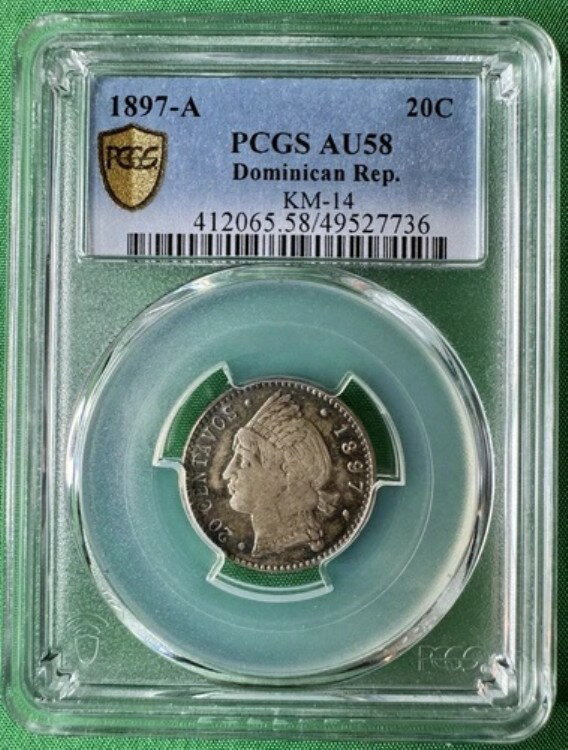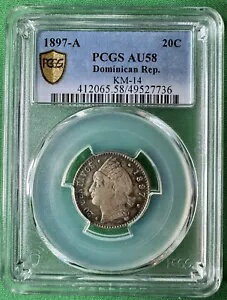 1897A ドミニカ共和国 アンティーク コイン 20 CENTAVOS PCGS AU 58 高 非常に希少