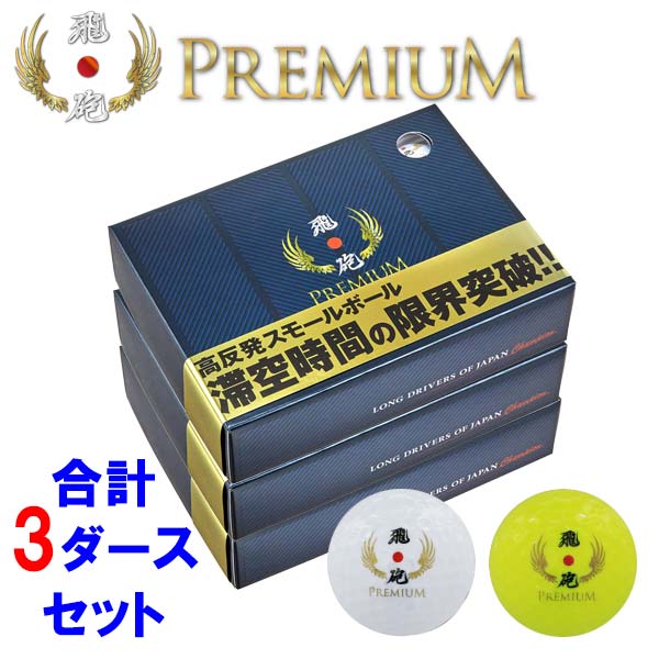 ホワイト(WH)イエロー(YE)合計3ダース(36球)セット販売 ・WH 3ダース ・YE 3ダース ・WH 2ダース+YE 1ダース ・WH 1ダース+YE 2ダース 高反発ゴルフボール「飛砲(ひほう/ヒホウ/HIHO)PREMIUM 『もっともっと飛距離が欲しいゴルファーへ』 高反発+スモール+ちょい重。飛ばしの要素を満載した<飛ばない訳が無い>究極のゴルフボール。 体積を約5%縮小、比重の約5%重くすることで、最大飛距離をさらに更新! ■高反発スモールヘビーボール 小さいことによる空気抵抗の少なさと、重いことによる運動エネルギーの大きさをとことん追求しました。 飛砲プレミアムは超高反発コアを使用していますが、従来の飛砲より小さくするにはコアも小さくせざるを得なかったため、跳ね返るエネルギーは大きくありません。にも関わらずプレミアムの方がよく飛ぶのは、空気抵抗と運動エネルギーと反発力のバランスが最適だからなのです。 ■超高反発ビッグバンコア ■表層膜アルティメットソフトカバー ■砲弾道エアロディンプル338メーカー希望小売価格はメーカーサイトに基づいて掲載しています