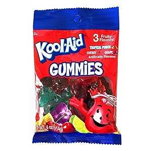 Hilco (1) bag Kool-Aid Gummies - Candy in 3 Fruity Flavors - Tropical Punch, Cherry, Grape - Net Wt. 4 oz
