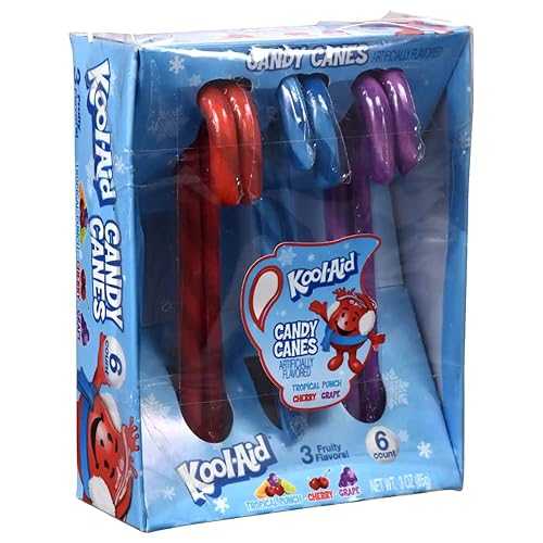 Hilco (1) ボックス クールエイド フレーバー キャンディ ケーン - 3 つのフレーバー: トロピカル パンチ、チェリー、グレープ - 個別包装されたホリデー キャンディ 6 個 - 正味重量。3.05オンス Hilco (1) Box Kool-Aid Flavored Candy Cane