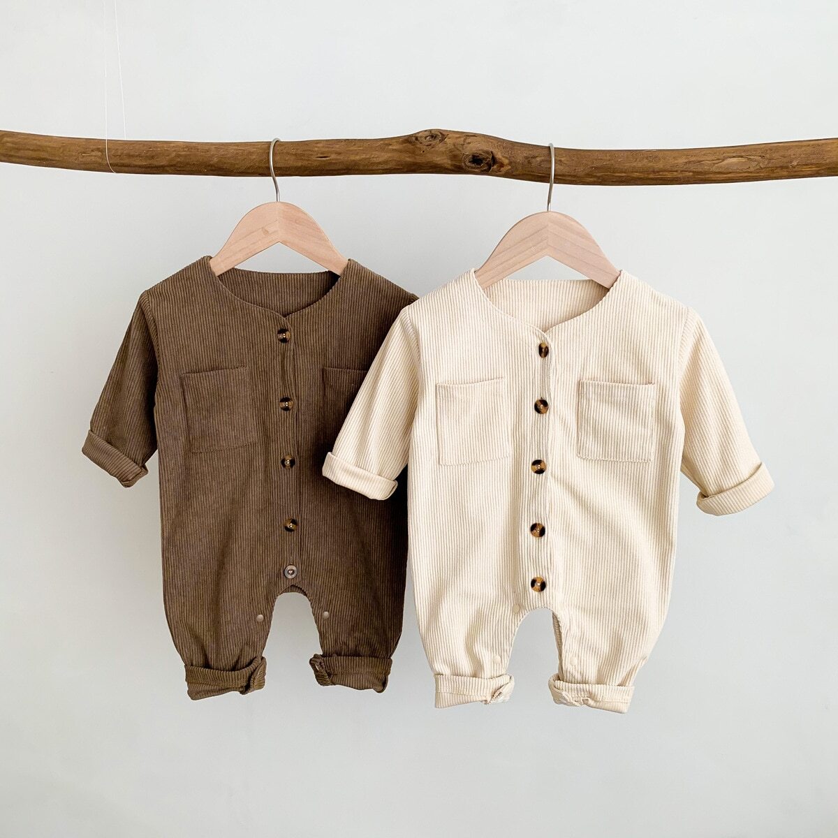 2カラー 男の子 女の子 コーデュロイロンパース 韓国子供服 66cm〜90cm