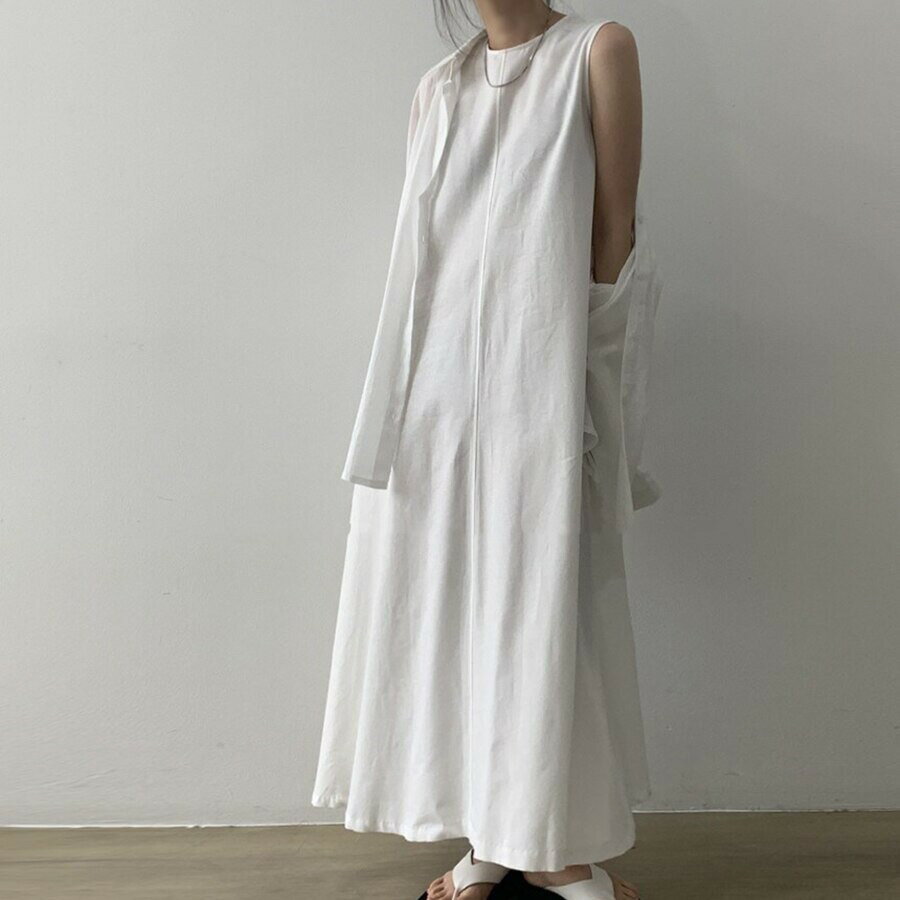 2カラー レディース ノースリーブモノトーンワンピース 韓国レディース服 ワンサイズ