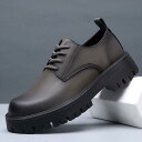 革靴 メンズ カジュアル レザーシューズ 牛革 厚底 紐 カーキ ブラック 男性用 紳士靴 普段使い 春