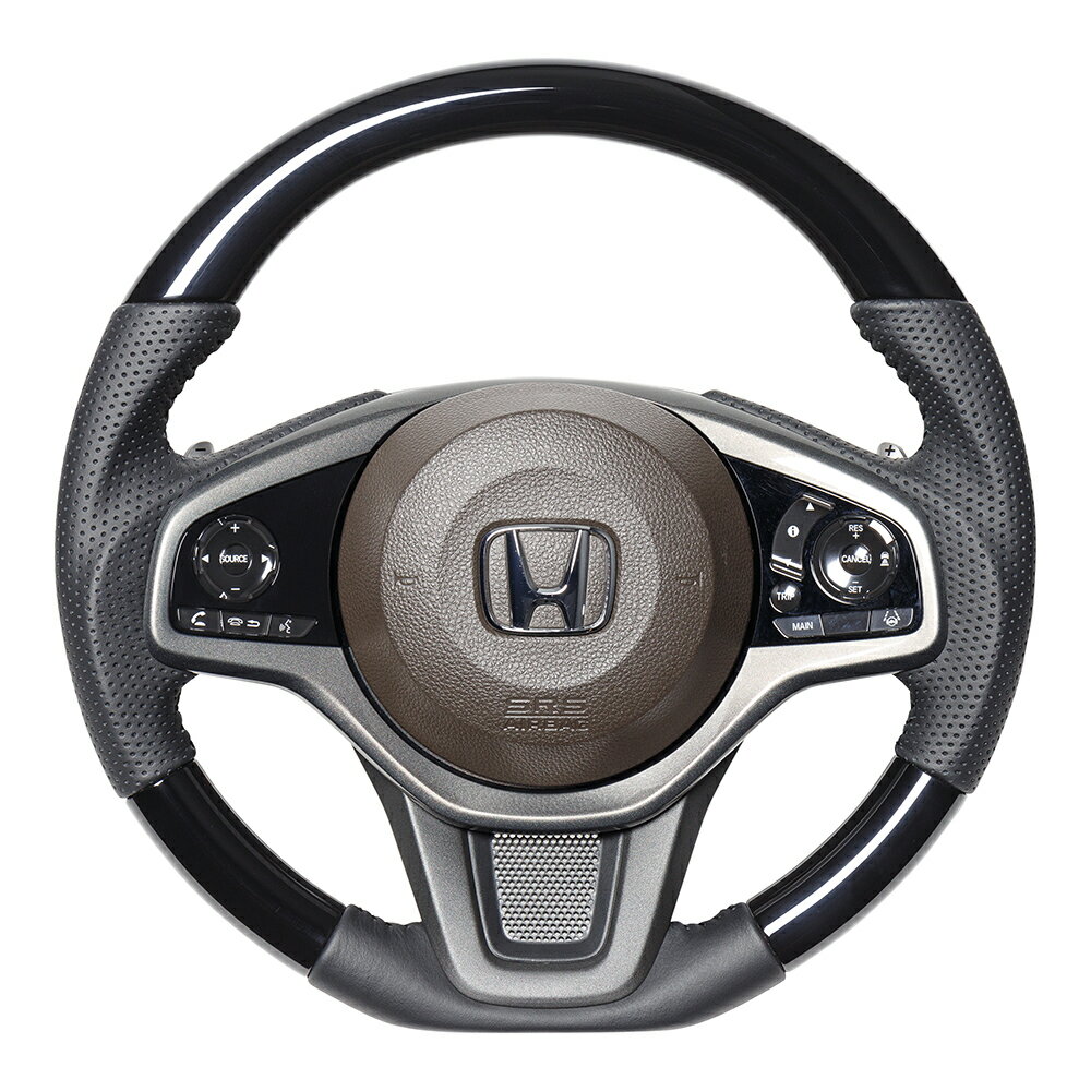 REAL ガングリップステアリング HND-PBW ピアノブラック ブラックステッチ N-WGN JH3/JH4 N-ONE JG3/JG4 N-VAN JJ1/JJ2