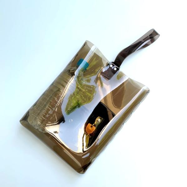 〇サイズ(寸法)タテ約28.0cmヨコ約20.0cm厚み約6.0cmハンドストラップヨコ幅約2.5cm 長さ約18.0cmハンドメイドのため多少の誤差あり※詳細を作品画像内にてご案内〇クリアカラー(全11色 展開)・クリア(透明) ・ホワイト(白)・ブラック(黒) ・グレージュ(茶)・ネイビー(紺) ・ブルー(青)・グリーン(緑) ・イエロー(黄)・オレンジ(橙) ・ピンク(桃)・レッド(赤)〇マテリアル(素材)オールシーズンクリアPVCALLSEASON CLEAR PVC / 国産 材質:軟質ポリ塩化ビニル/中肉厚地 クリアPVC(透明ビニール) 材料:塩、エチレンなど RoHS2にある有害物質は含まず 機能:防滴撥水効果〇 産地:日本 ハリコシ:柔い ☆☆★☆☆ 硬い 透け感 :無い ☆☆☆☆★ 有る 防滴効果:無い ☆☆☆☆★ 高い 耐光性能:低い ☆☆★☆☆ 高い キズ耐性:弱い ☆★☆☆☆ 強い
