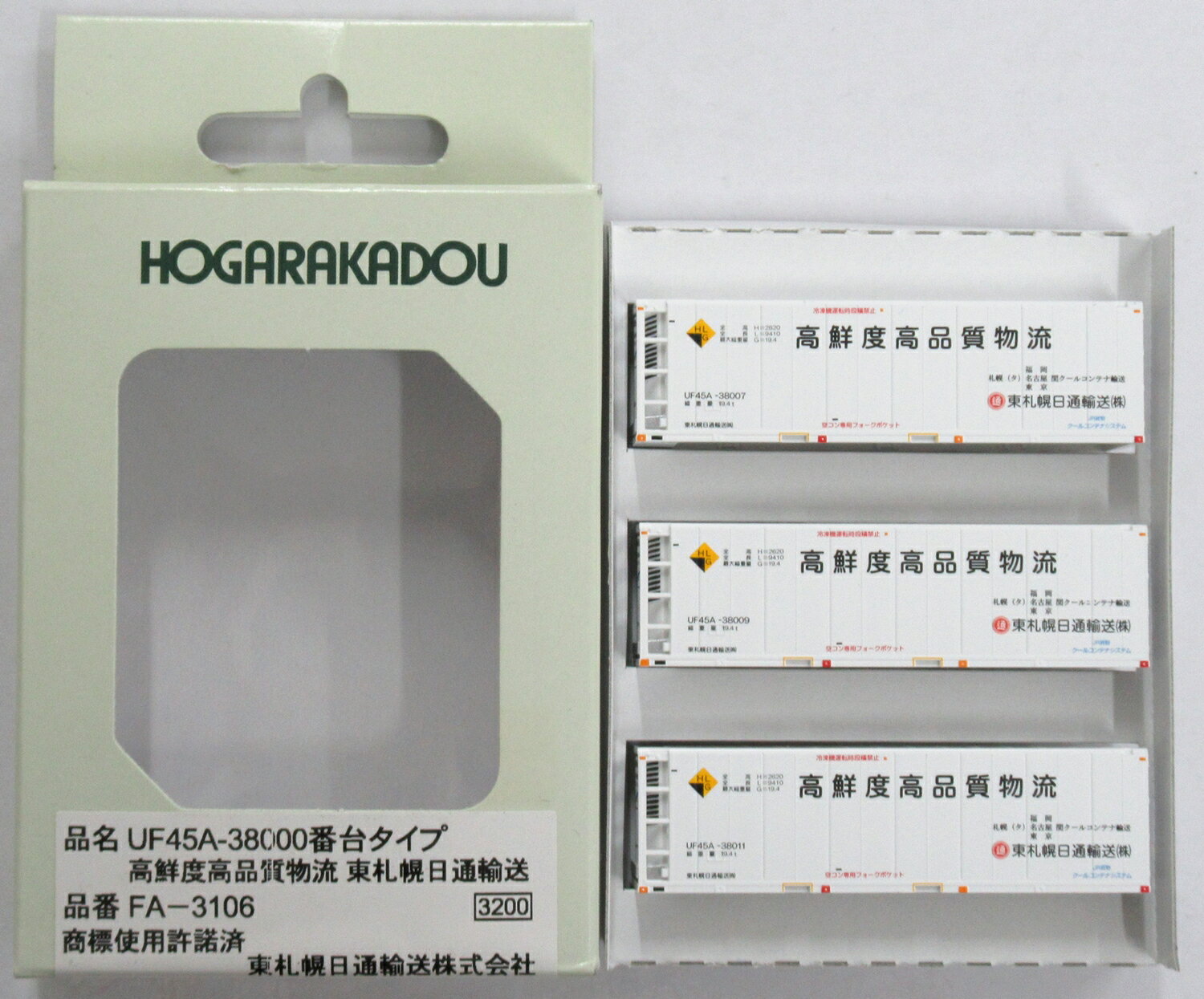 【中古】Nゲージ HOGARAKADOU(朗堂) FA-3106 UF45A-38000番台タイプ 高鮮度高品質物流 東札幌日通輸送 【A´】 外箱傷み