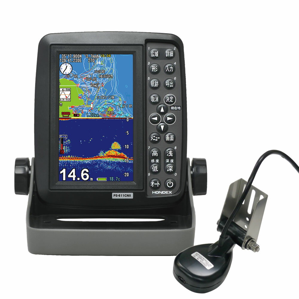 ホンデックス PS-611CNII ディープ仕様 TD25振動子セット GPSアンテナ内蔵 5型ワイド GPS 魚探 100W 50/200kHz 魚群探知機