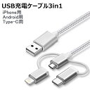 【急速充電】充電器 充電ケーブル 3in1 充電器 タイプC type-C USB ケーブル 充電器 Iphone android マルチケーブル