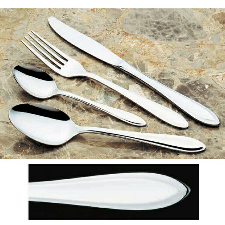 【18-10 ニューホープ】 ●サイズ(デザートナイフ刃付):全長210mm ●サイズ(デザートフォーク):全長190mm ●サイズ(デザートスプーン):全長186mm ●サイズ(デザートスープスプーン):全長176mm ●サイズ(ソーダスプーン):全長183mm ●サイズ(ティースプーン):全長140mm ●サイズ(角アイススプーン):全長136mm ●サイズ(グレープフルーツスプーン):全長141mm ●サイズ(バターナイフ):全長156mm ●サイズ(ティーケーキフォーク):全長151mm ●サイズ(サラダフォーク 小):全長150mm ●サイズ(コーヒースプーン):全長119mm ●サイズ(ヒメフォーク):全長125mm ●サイズ(シュガーレードル):全長125mm ●サイズ(ソースレードル):全長163mm ●サイズ(テーブルナイフ刃付):全長230mm ●サイズ(テーブルフォーク):全長218mm ●サイズ(テーブルスプーン):全長216mm ●サイズ(サービススプーン):全長218mm ●サイズ(サービスフォーク):全長228mm ●材質:18-10ステンレス ●食器洗浄機対応 ※代表画像だけとなりますことご了承ください。 ■鉄に18%以上のクロムと10%以上のニッケルを添加した高品質なステンレス。 ■サビに強く耐久性に優れています。