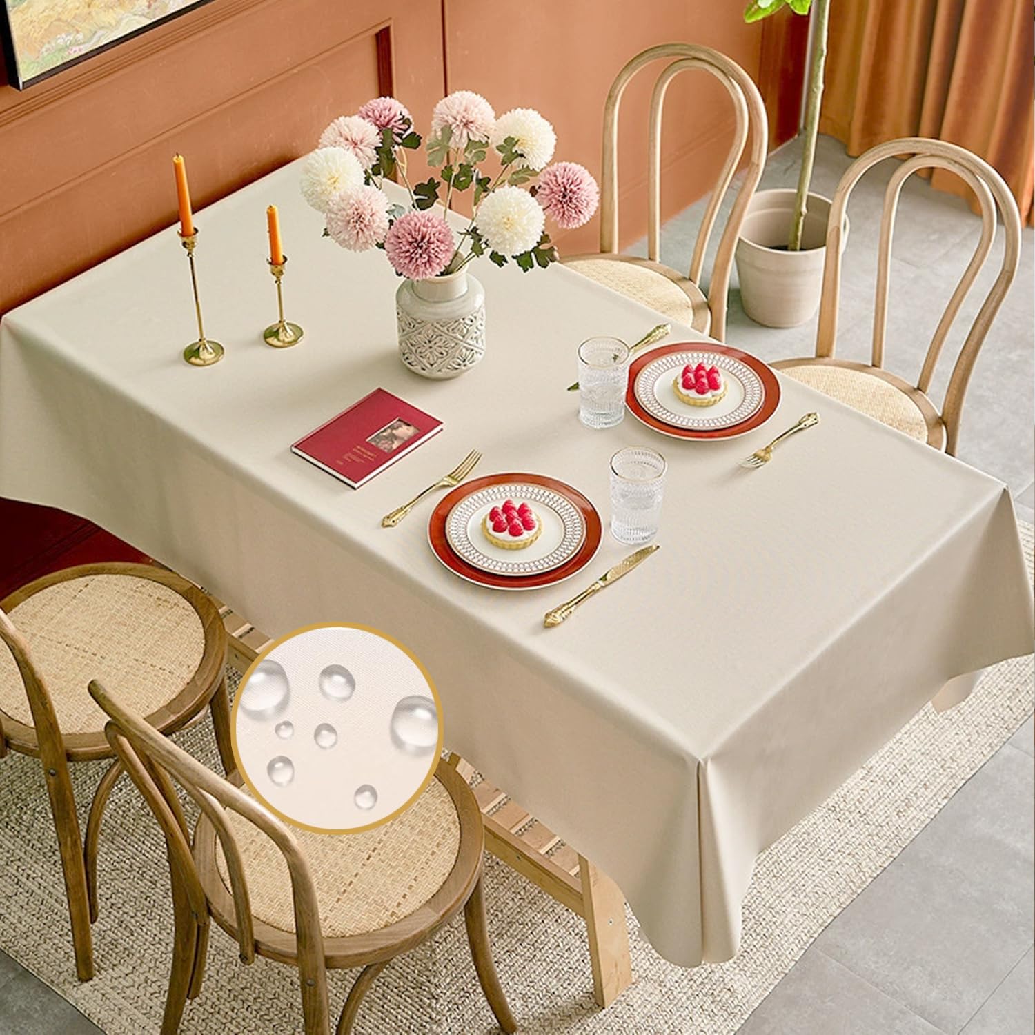 Hopeholic テーブルクロス ビニール おしゃれ 撥水 長方形 PVC製 無地 シンプル テーブルカバー 北欧 防水 防油 汚れ防止 耐久 耐熱 クロステーブル ずれにくい 長さ調節可 厚手 ビニールクロス 家庭用 業務用 ベージュ 140x200c