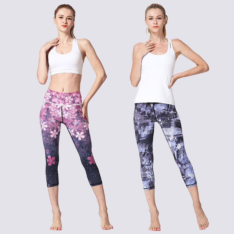 ヨガパンツ レディース スポーツ 7分丈 ショートパンツ ランニング ダンス フィットネス 吸湿速乾 フラワープリント 春夏