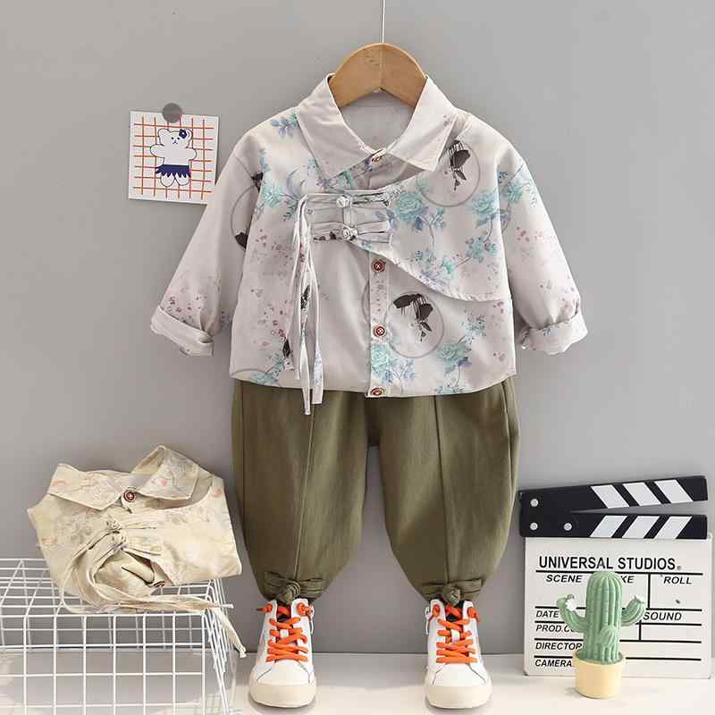セットアップ キッズ 男の子 長袖 チャイナ風 シャツ パンツ カジュアル おしゃれ 綿素材 柔らかな肌触り 春秋 通園 通学 普段使い お出かけ コーデ