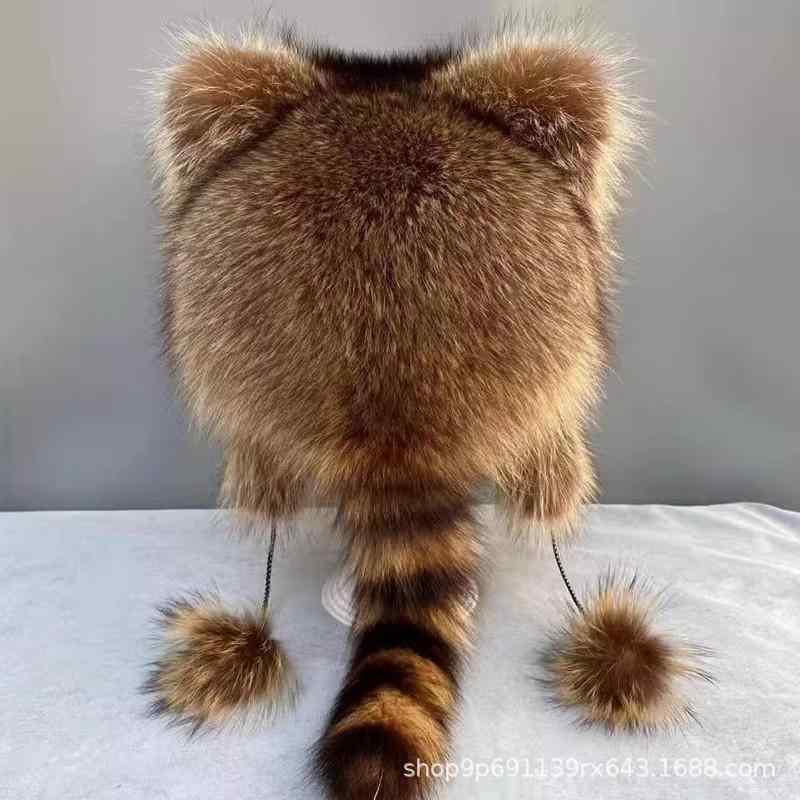 帽子 子供用 防寒帽子 耳当て付き アライグマ風 ファー 冬 あたたかい キッズ 大人 本色