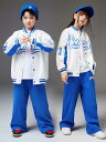キッズ ダンス衣装 セットアップ 男の子 ストリート系 ブルー 野球 ジャケット パンツ 上下 セット 子供 HIPHOP ヒップホップ ウェア ジュニア 舞台 演出服 普段使い レッスン着 綿