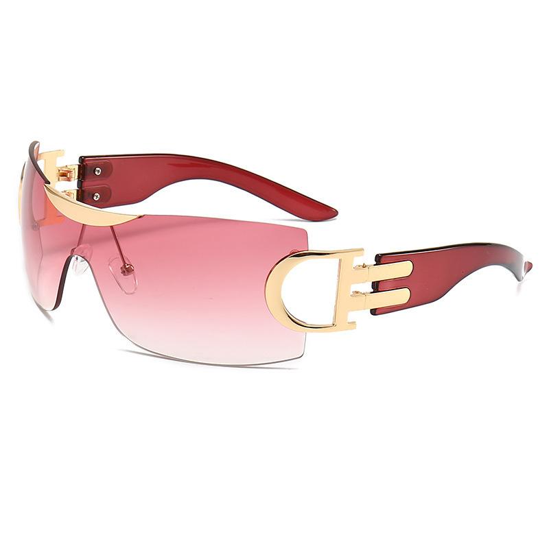 サングラス Y2K フューチャリスティック ビッグフレーム リムレス PCフレーム PCレンズ UV400 UVカット 眩しさ対策 スポーツ アウトドア サイクリング ドライブ 釣り 普段使い グレーレンズ ブラックフレーム 春夏